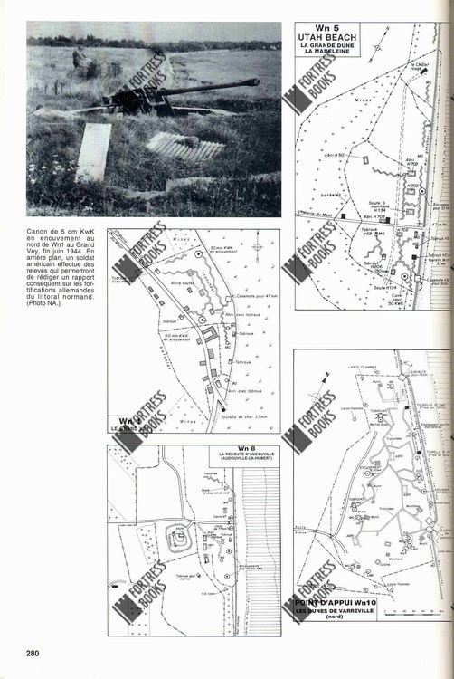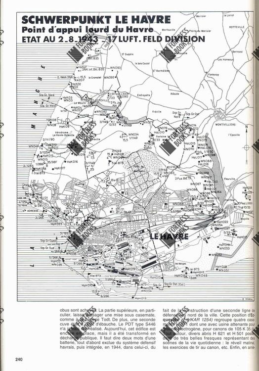 Published in 1995. the book is probably one of the hardest-to-find books on the subject. Illustrated with more than 1200 photos, plans, drawings and maps. the book traces the ENTIRE Atlantic Wall in France. Starting in the north, along the Belgian-French border, the authors describe the individual coastal batteries, the anti-aircraft batteries, infantry strongpoints, radarstations, etc. etc. Most of the descriptions of the individual sites contain siteplans - but also floorplans of the most important individual bunkers and structures on each site. The book is illustrated with MANY HUNDREDS of contemporary (read: wartime) photos, but also with many modern photos, that show the structures in their present state. This book is an ABSOLUTE MUST for anyone with an interest in the Atlantic Wall in general, but with an interest in the French part of it in particular. The book is written in French - EXTREMELY RARE!! |