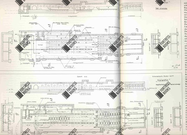 At least after the movie "Das Boot" the existence of the enormous u-boat bunkers is known to the general public. Many books have been published on the subject, but - without a doubt! - this is THE best book. Forget the rest: THIS is the best! After years of intensive research, the author has been able to gather information about all bunkers of this type that were built during World War One, but, on a much large scale, in World War Two. The size of these bunkers is often breathtaking - an example: "Valentin" the codename for the bunker in Bremen is 426 meters long and almost 100 meters wide! These bunkers were built in Norway, Germany, Belgium and France. The book gives the reader details - in words, but also with the use of MANY photos, drawings and floorplans! - about every bunker that was built and about its purpose. The book is out of print, hard-to-find and written in German. It is in VERY GOOD shape and illustrated with HUNDREDS of photos (contemporary as well as modern), drawings, floorplans and maps. |